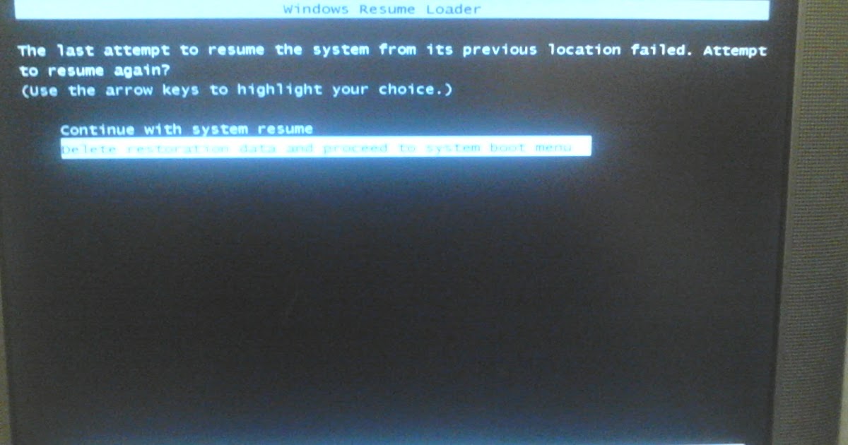 Last attempt to resume the system from its previous location failed Hindi - YouTube. Hope this helps for any further queries reply to the post and feel free to join us again. The last attempt to resume the system from its previous location failed. Continue with system resume. Delete restoration data and proceed to system boot. Windows Resume Loader The last attempt to restart the system from its previous location failed. Please remove unwanted startup items and uninstall unwanted applications. The Last Attempt To Resume The System From Its Previous Location Failed Delete restoration data and proceed to system boot menuTo check if hibernation works you can try to hibernate in the reboot mode. Enterchoose This prompt gives you two options for resuming.
